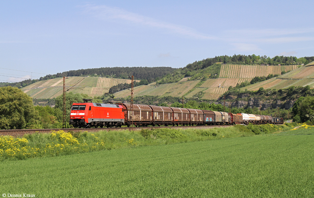 152 019 mit gemischten Güterzug am 13.05.2015 bei Himmelstadt.