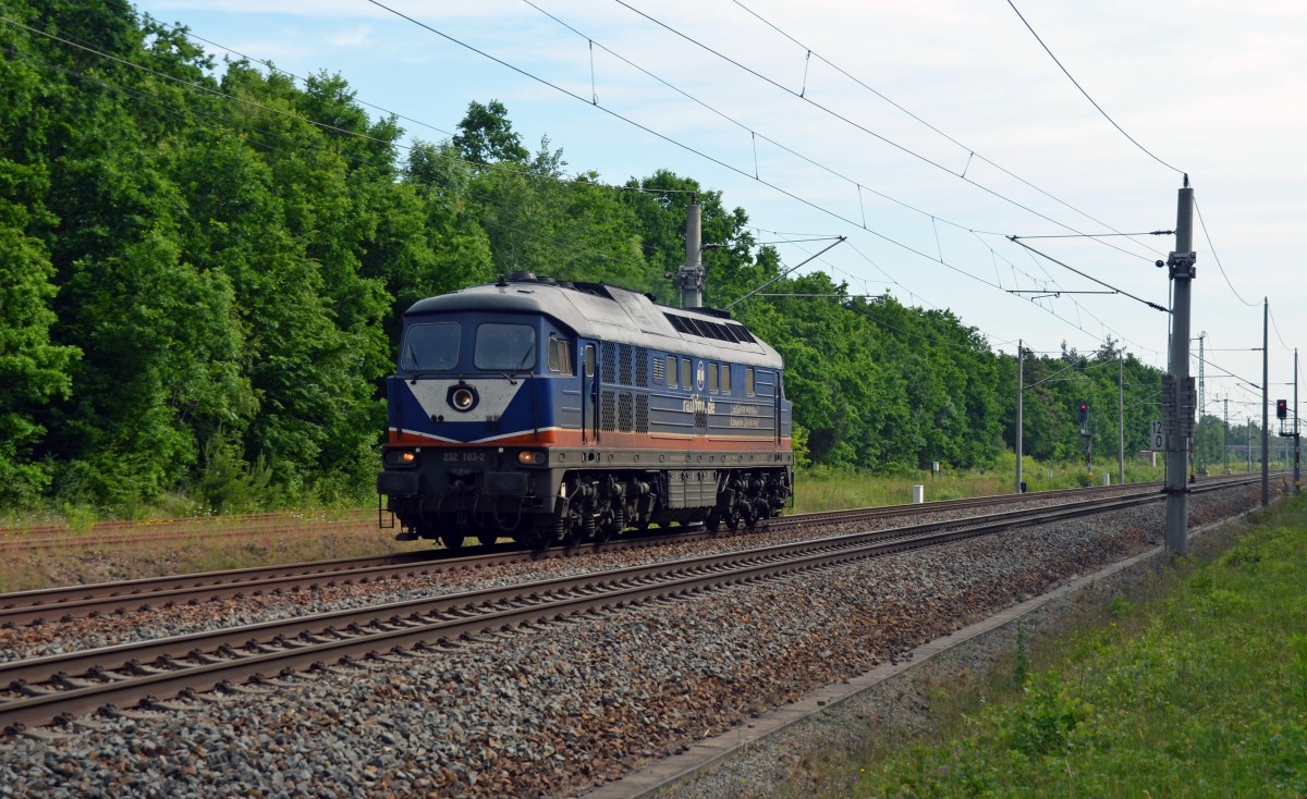 232 103 der Raildox passierte am 10.06.15 Burgkemnitz ohne Waggons in Richtung Bitterfeld.