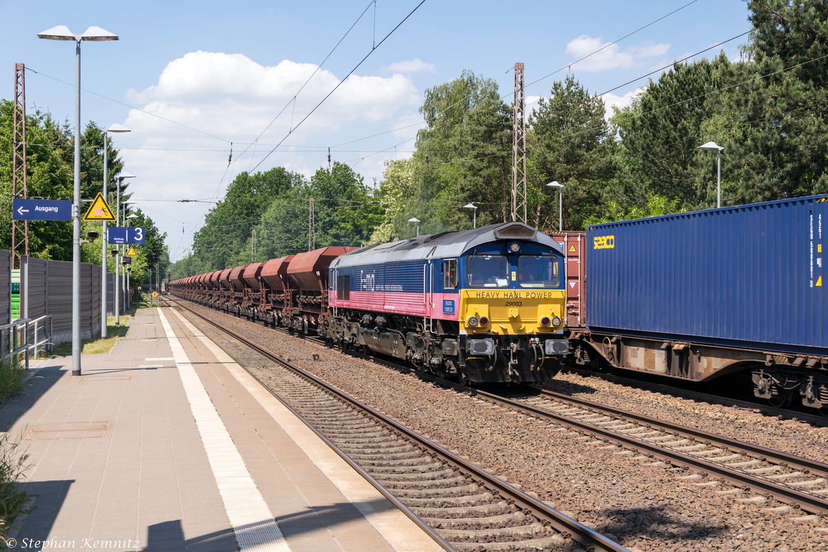 29003 (266 015-7) Heavy Haul Power International GmbH mit einem Facs Ganzzug in Bienenbüttel und fuhr weiter in Richtung Uelzen. 12.06.2015