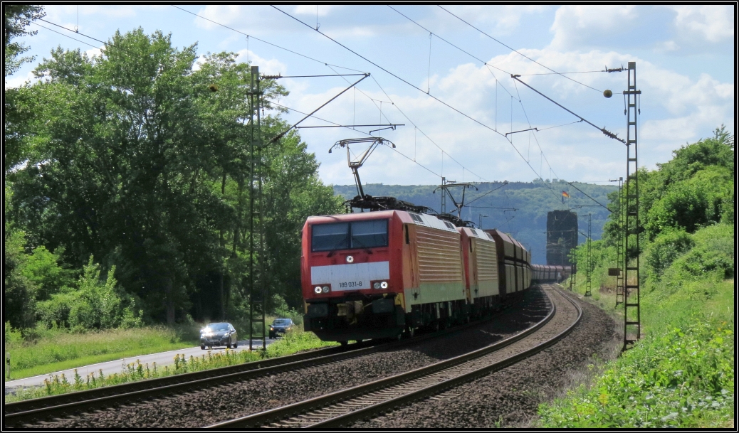 Auf ins Saarland heißt es für die beiden 189´ger mit Hollandlatz.Mit einen Erzganzzug am Haken(aus Rotterdam)geht es über die rechte Rheinstrecke nach Koblenz.
