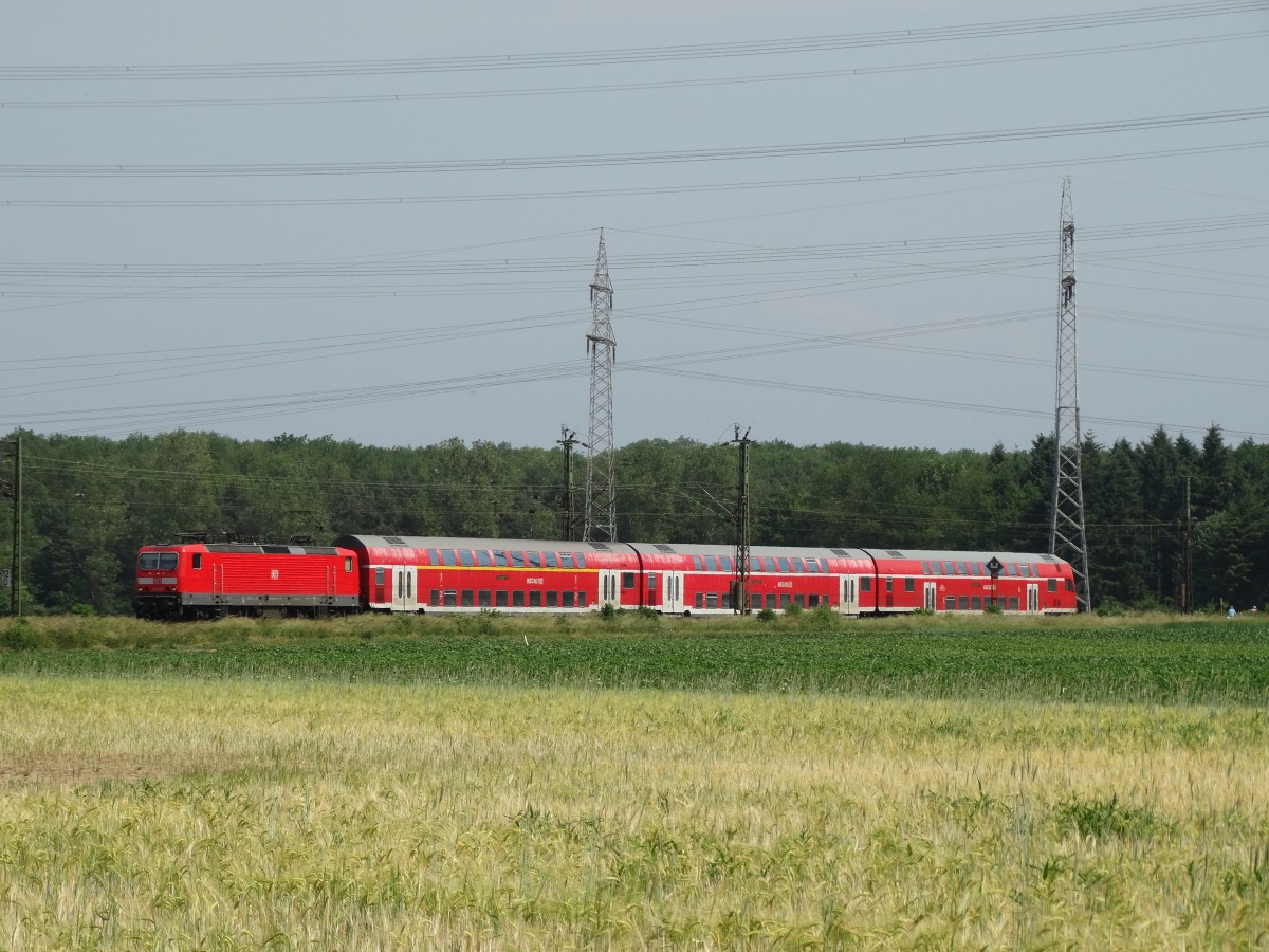 In Korschenbroich ist gerade die 111 093 mit einem RE4 nach Dortmund bei der Durchfahrt zu sehen. 13.6.2015