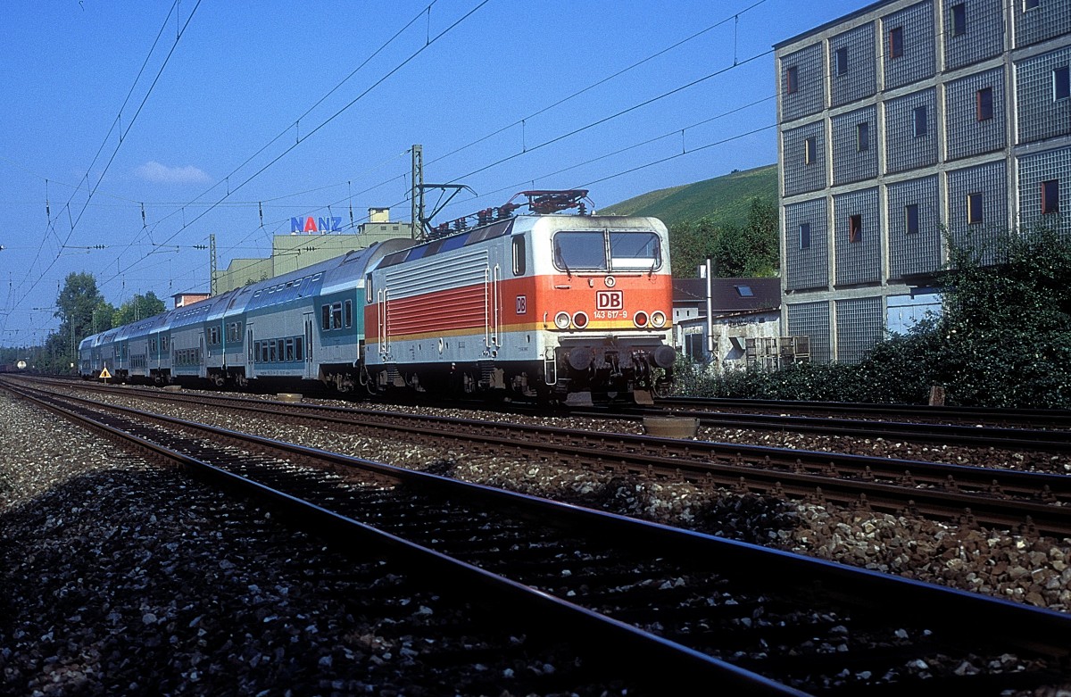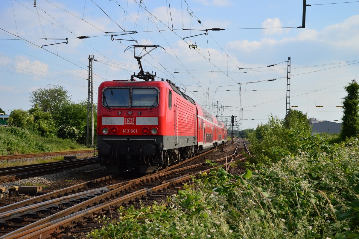 Nachschuß auf die schiebende 143 661 mit einem RB27 in Grevenbroich.9.6.2015
