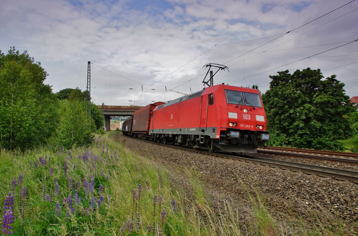 185 202-9 ist am 10.06.15 mit einen Güterzug bei Fulda zu sehen.