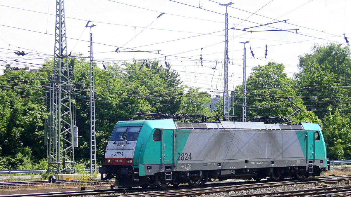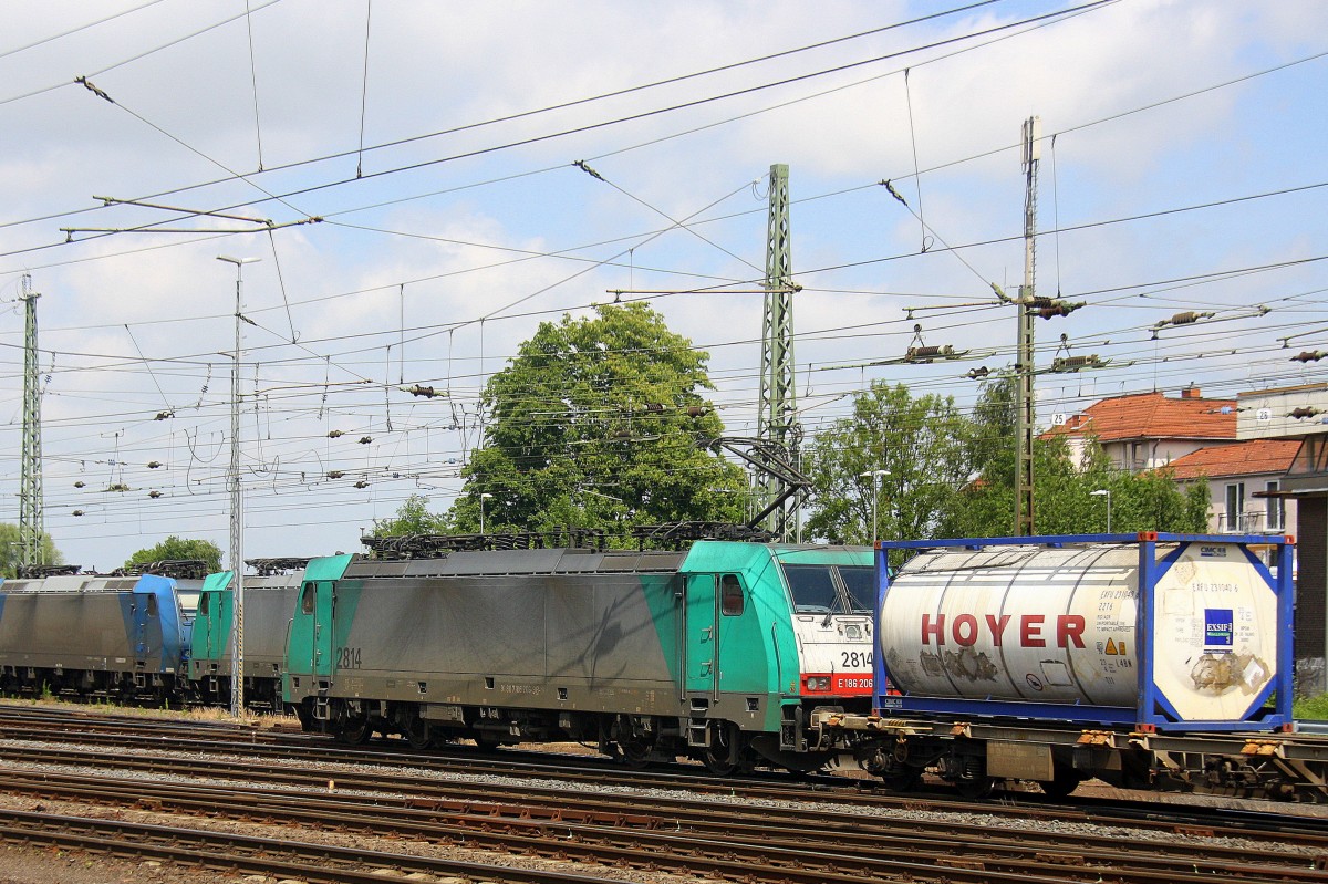 Ein Bilck auf die Cobra 2814 sie kommt mit einem Containerzug aus Antwerpen-BASF(B) nach Gallarate(I) und fährt in Aachen-West ein.
