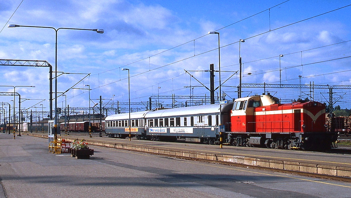 VR Dv12 2745 steht im Juni 1990 abfahrbereit im Bahnhof von Tampere