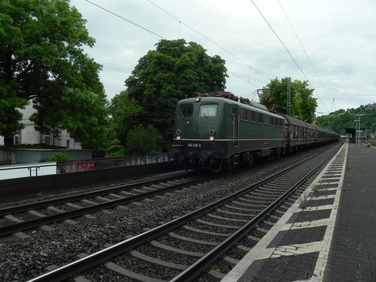 Wie in alten Zeiten. Die grüne 140 438-3 kam am 13.5.15 mit dem Henkelzug durch Linz gefahren.