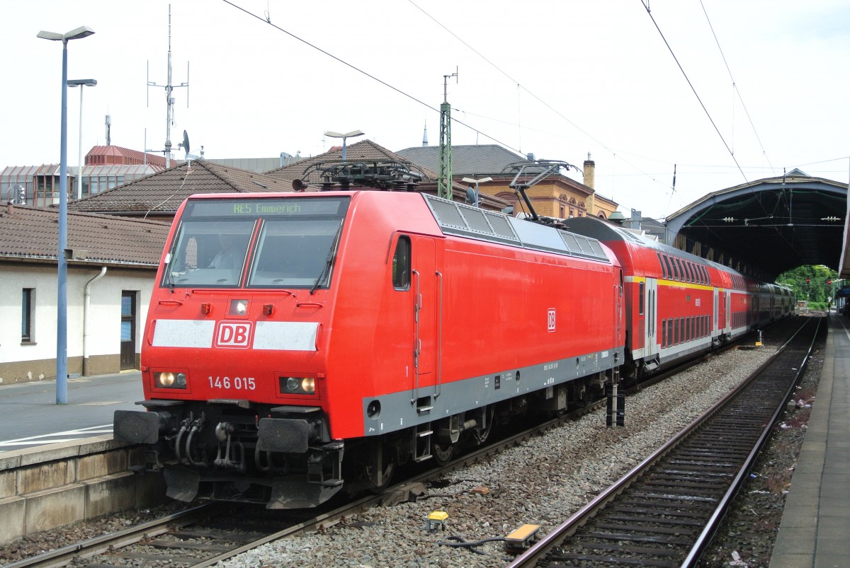 146 015 mit RE 10522 von Koblenz nach Emmerich beim Halt in Bonn HBF. 17.06.2015 um 15:06 Uhr.