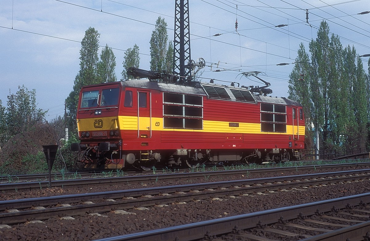 Schon in den der neuen Farbe und umnumeriert fährt der Tw 424 der Dresdner Verkehrsbetriebe Anfang Mai 1993 als Linie 5 nach Weinböhla