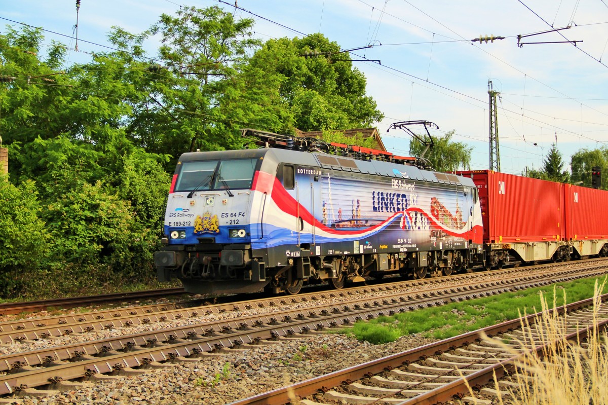 Bunte Abwechslung brachte 189 212-4 (MRCE, vermietet an ERS Railways) am 17.06.2015 kurz nach Müllheim (Baden).