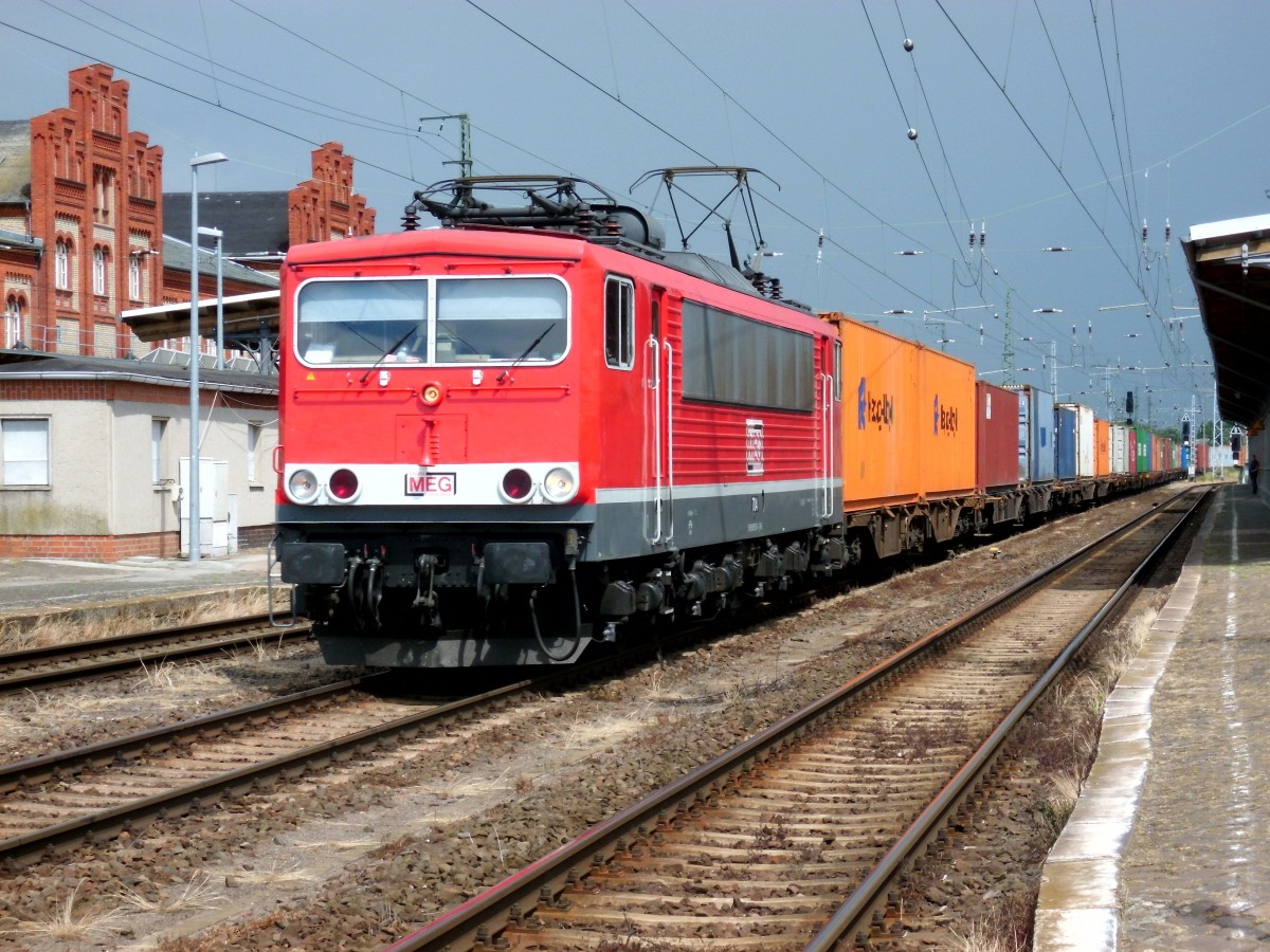 Am 20.06.2015 kam MEG 704 (155 195) mit ihrem Containerzug aus Richtung Magdeburg nach Stendal und fuhr weiter nach Wittenberge.