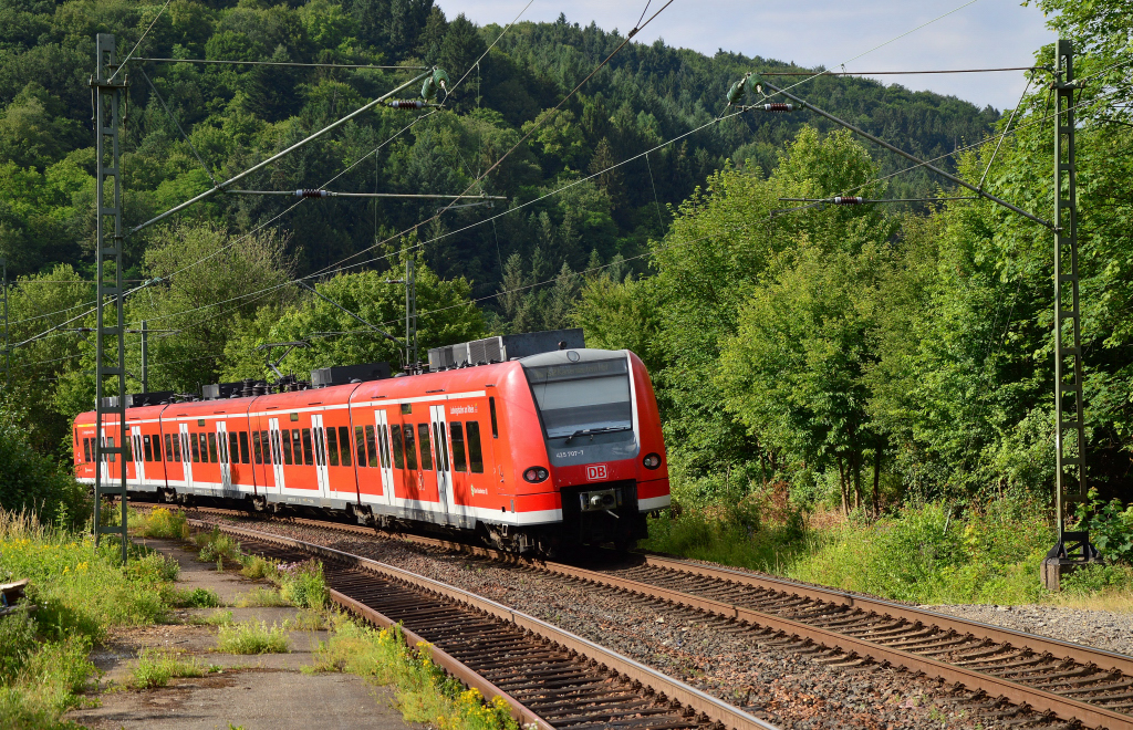 Nachschuß auf den 425 707 nach Kaiserslautern beim Verlassen von Neckargerach. 20.6.2015