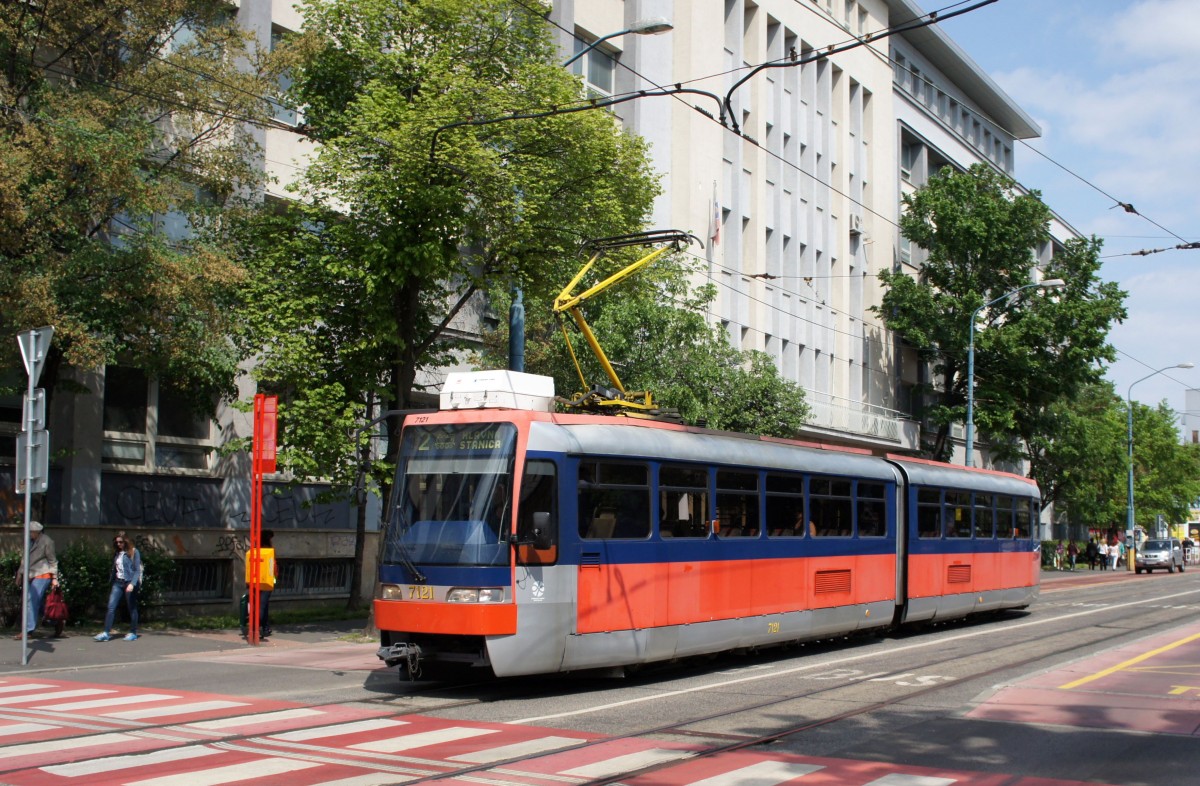 Tw.7831+7832 befahren in der Krizna ulica die Abzweigung zur Vazovova ulica. (06.06.2015 )