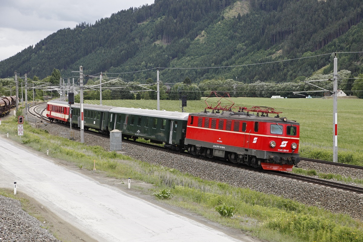 1144 021 mit IC 690 (Wien Westbahnhof - Villach Hbf) am 21.6.2015 bei der Durchfahrt durch die Haltestelle Oberfalkenstein.