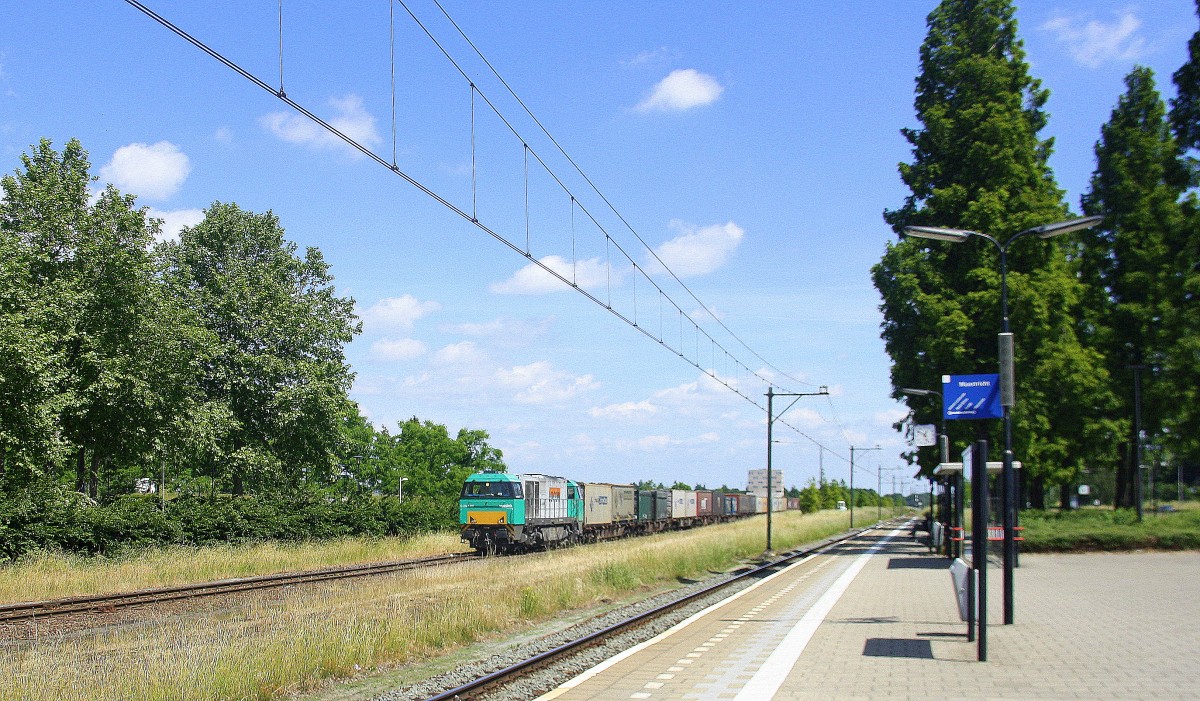 1605 von LOCON kommt mit einem langen Ewals-Cargo-Care-Containerzug aus Novara(I) nach Geleen-Lutterade(NL) und fährt in Geleen-Lutterade(NL) ein.