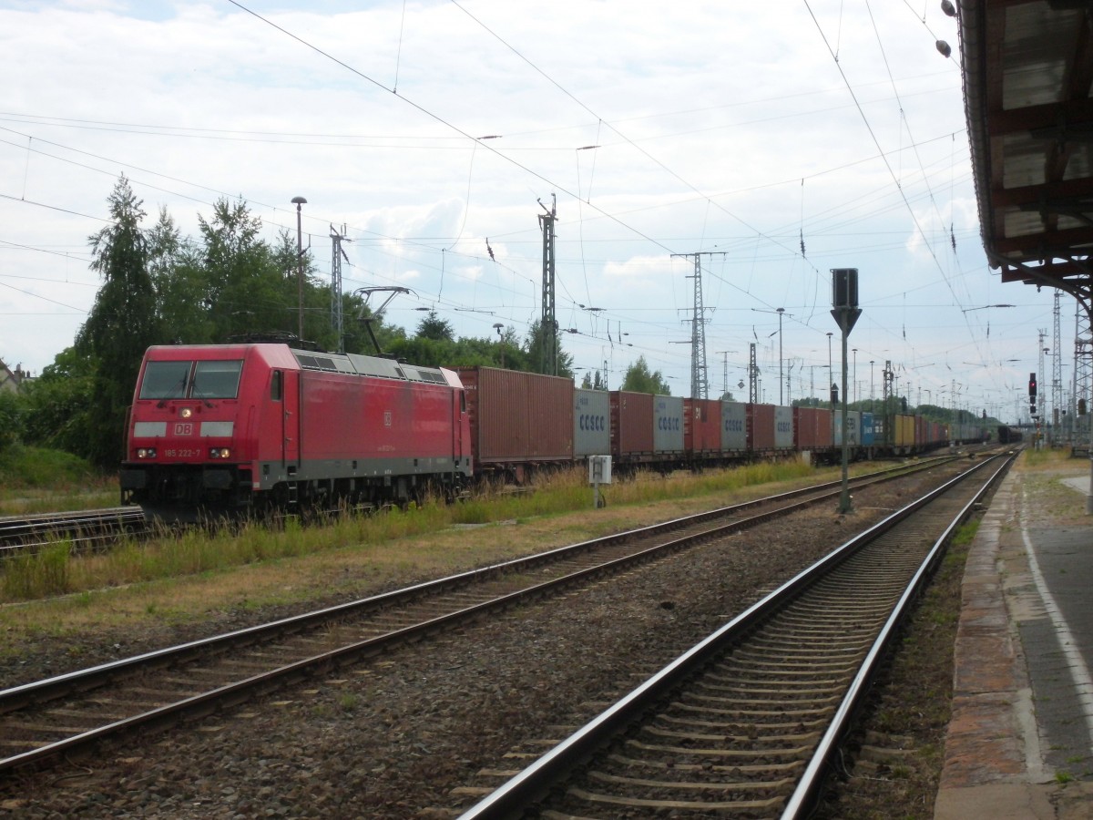Am 21.06.2015 kam 185 222 mit ihrem Containerzug aus Richtung Hamburg nach Stendal und fuhr weiter nach Magdeburg.
