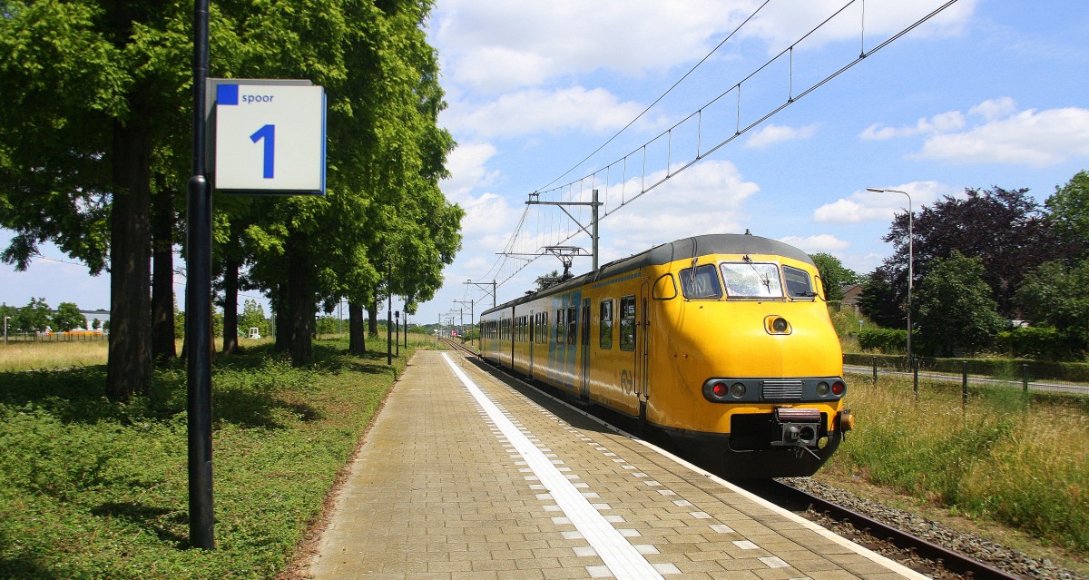 Plan V 472 mit Regionalzug aus Maastricht-Randwyck(NL) nach Roermond(NL) und fährt in Geleen-Lutterade ein und hält in Geleen-Lutterade(NL) und fährt dan weiter in Richtung Sittard(NL). Aufgenommen in Geleen-Lutterade(NL). Bei schönem Sonnenschein am Mittag vom 14.6.2015.