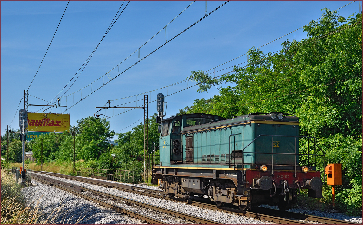 SŽ 642-185 fährt als Lokzug durch Maribor-Tabor Richtung Maribor HBF. /18.6.2015
