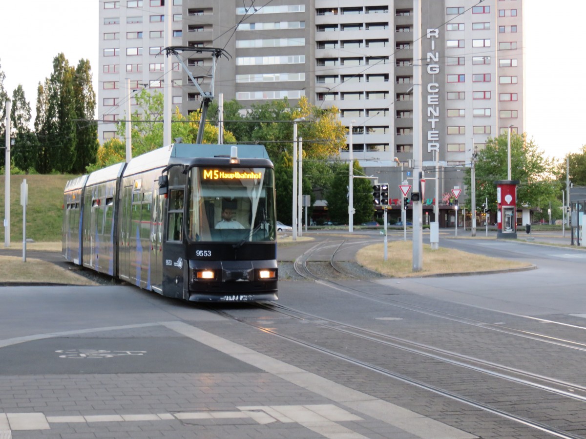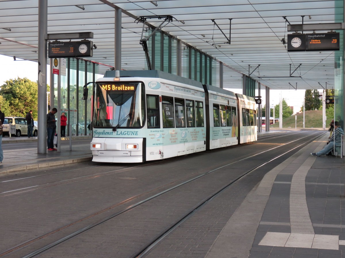 Wagen 9551 als M5 nach Broitzem am 16.06.2015 am Braunschweiger Hauptbahnhof.
