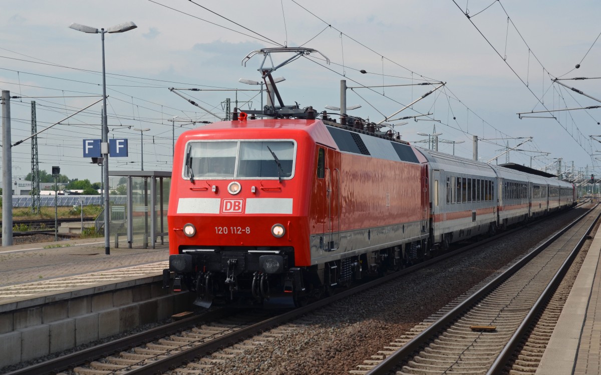 Zusammen mit 120 143 am anderen Zugende bespannte die ehemalige Märklin-Lok 120 112 am 14.06.15 den IC 2411 von Berlin nach München. Ihre Abnahme im Werk Dessau war am 09.06.15.