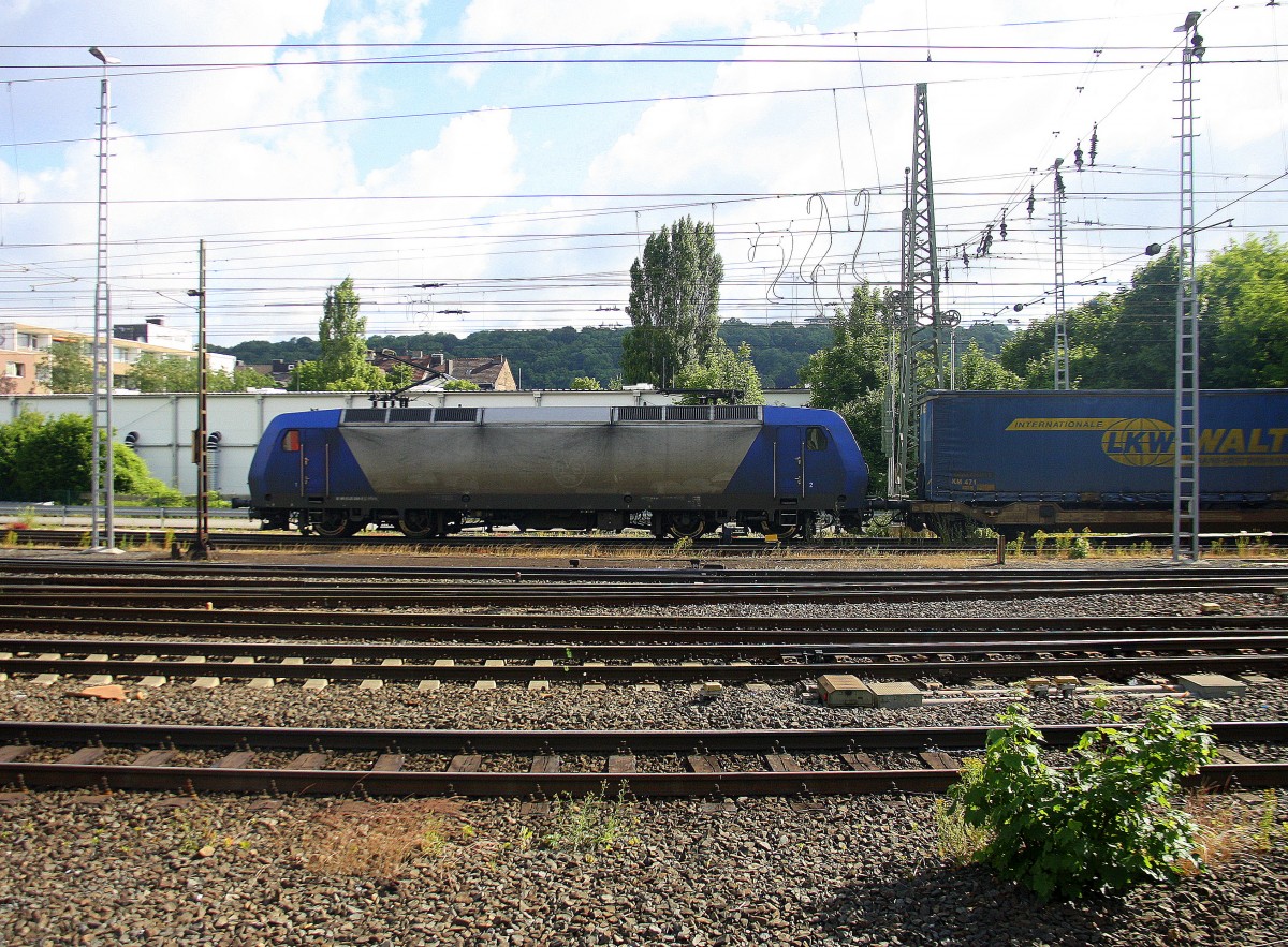 145 CL-202 von Crossrail kommt aus Richtung Köln,Aachen-Hbf,Aachen-Schanz mit einem LKW-Walter-Zug aus Novara(I) nach Genk-Goederen(B) und fährt in Aachen-West ein.