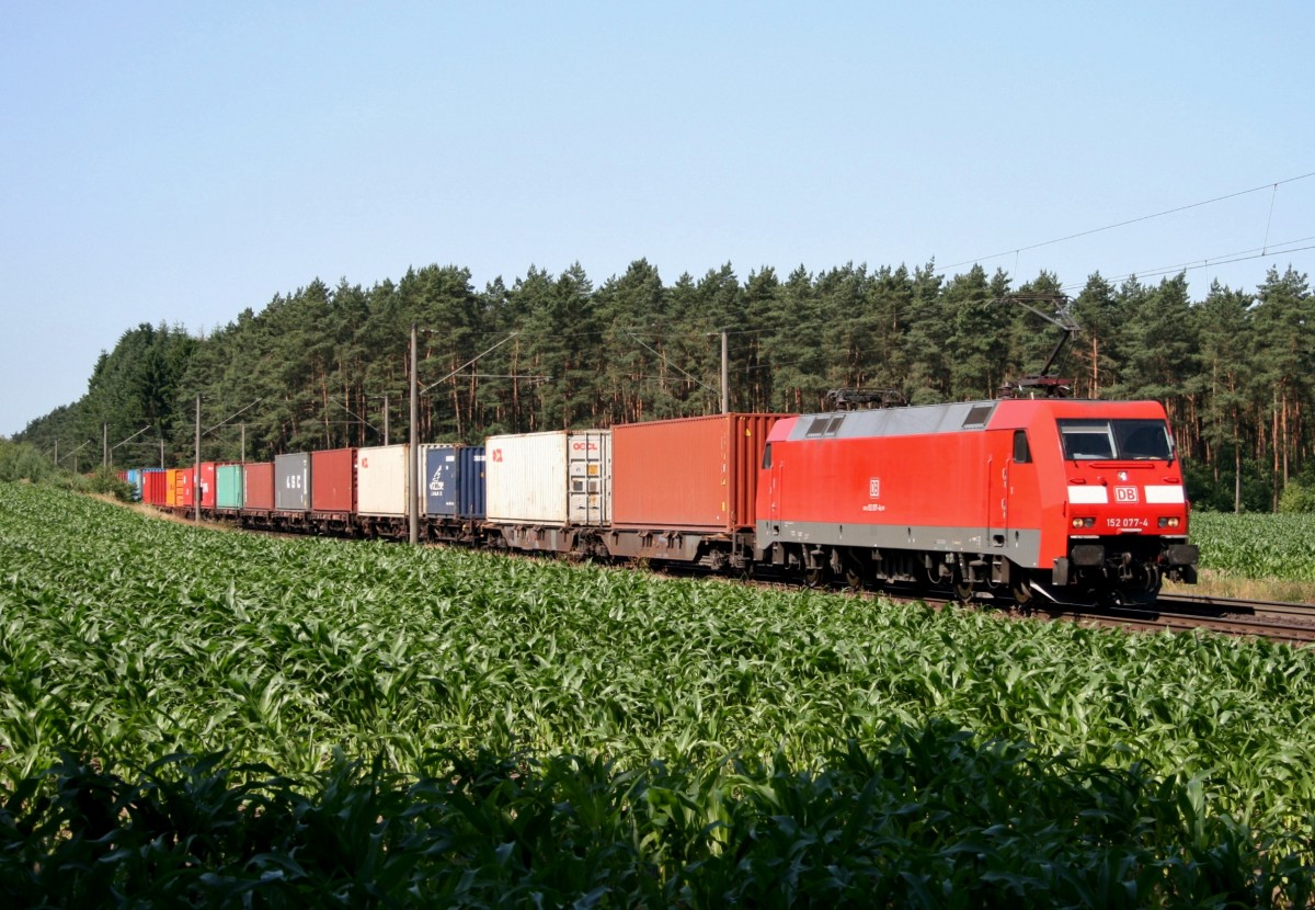152 080-8 DB kommt aus Richtung Köln mit einem langen gemischten Güterzug aus Köln-Gremberg(D) nach Süden und fährt in Richtung Koblenz auf der Rechte Rheinstrecke KBS 465 bei Bad-Honnef am Rhein.