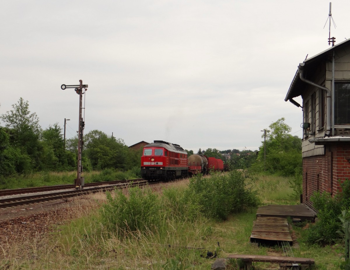 Zur Zeit wird die 285 108 der ITL bei der RBB eingesetzt. Am 21.06.15 rollte sie mit dem Sodazug aus Stassfurt durch Greppin nach Bitterfeld.