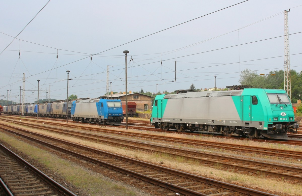 27.6.2015 Eberswalde Hbf. 185 523 + 633 (v.l.) + 7 RBH Maschinen abgestellt