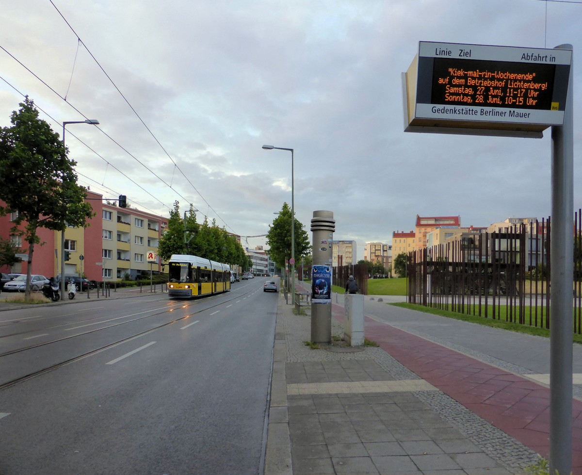 Berliner Impressionen: einst so schrecklich, heute so friedlich - Wagen 2017 an der Mauer-Gedenkstätte; die einstige Mauer ist heute mit Pfählen markiert. 23.Juni 2015.