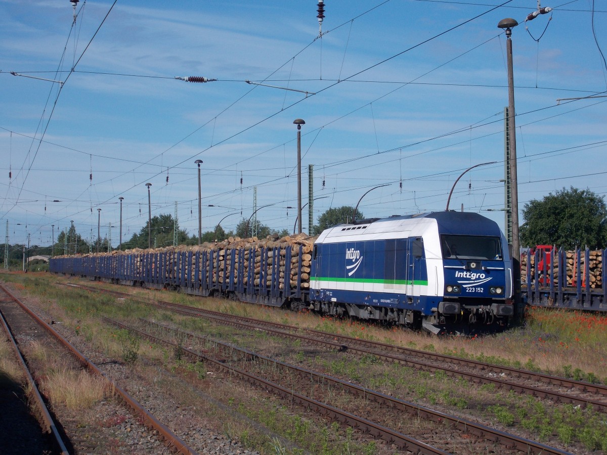 Ein Teil beladener Holzwagen wurde,am 26.Juni 2015,in Bergen/Rügen,von der IntEgro 223 152 abgestellt,danach mußten die letzten leeren Wagen,für die Beladung,auf der Ladestraße bereit gestellt werden.
