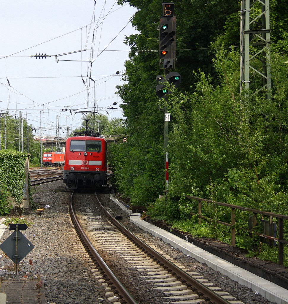 Ein Nachschuss von der 111 096 DB kommt als Lokzug aus Richtung Herzogenrath,Kohlscheid,Richterich,Laurensberg und fuhr durch Aachen-West und fuhr in Richtung Aachen-Schanz,Aachen-Hbf. Aufgenommen vom Bahnsteig in Aachen-West. Bei Sonne und Wolken am Nachmittag vom 26.6.2015.
