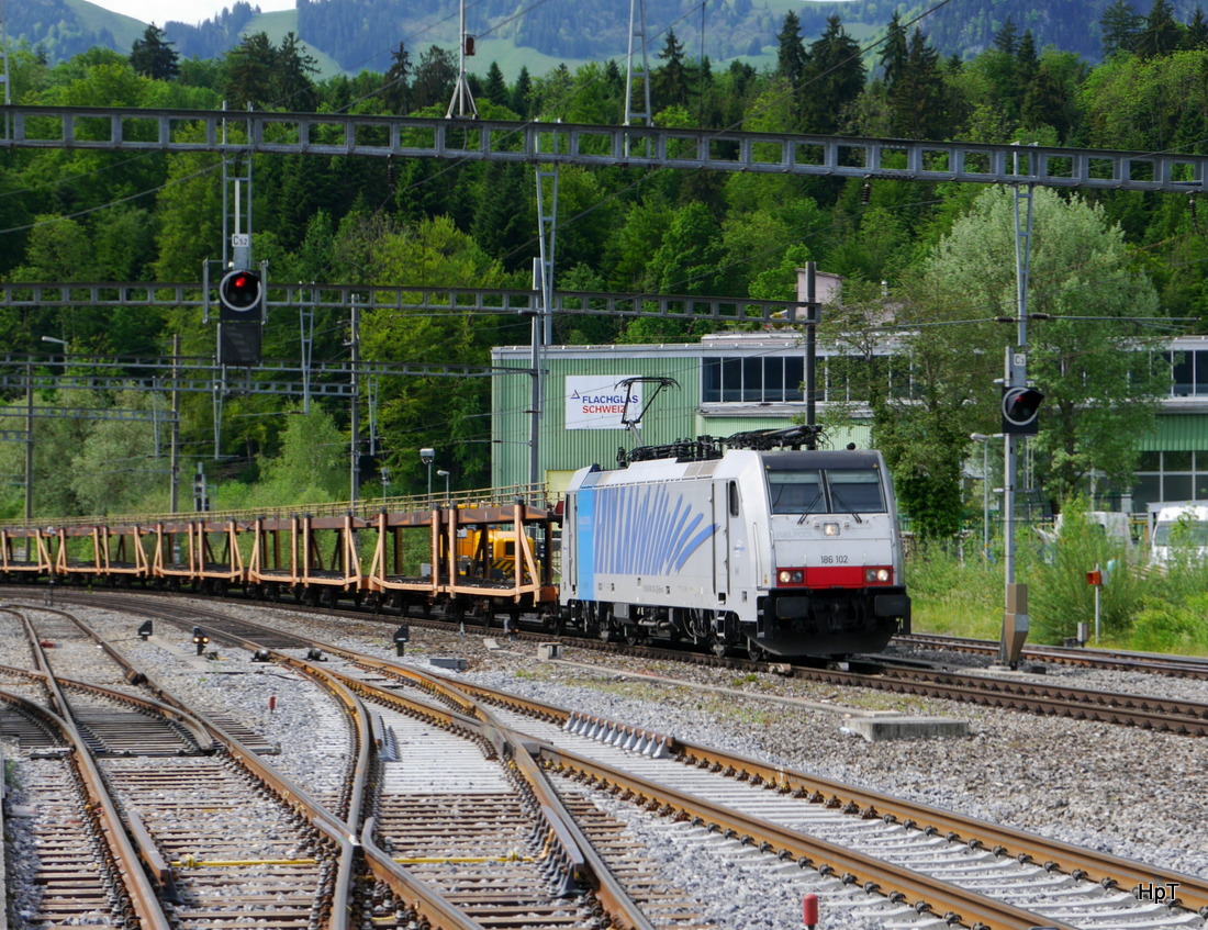 RailPool - Lok 186 102-0 vor Güterzug bei der durchfahrt in Gwatt am 14.05.2015
