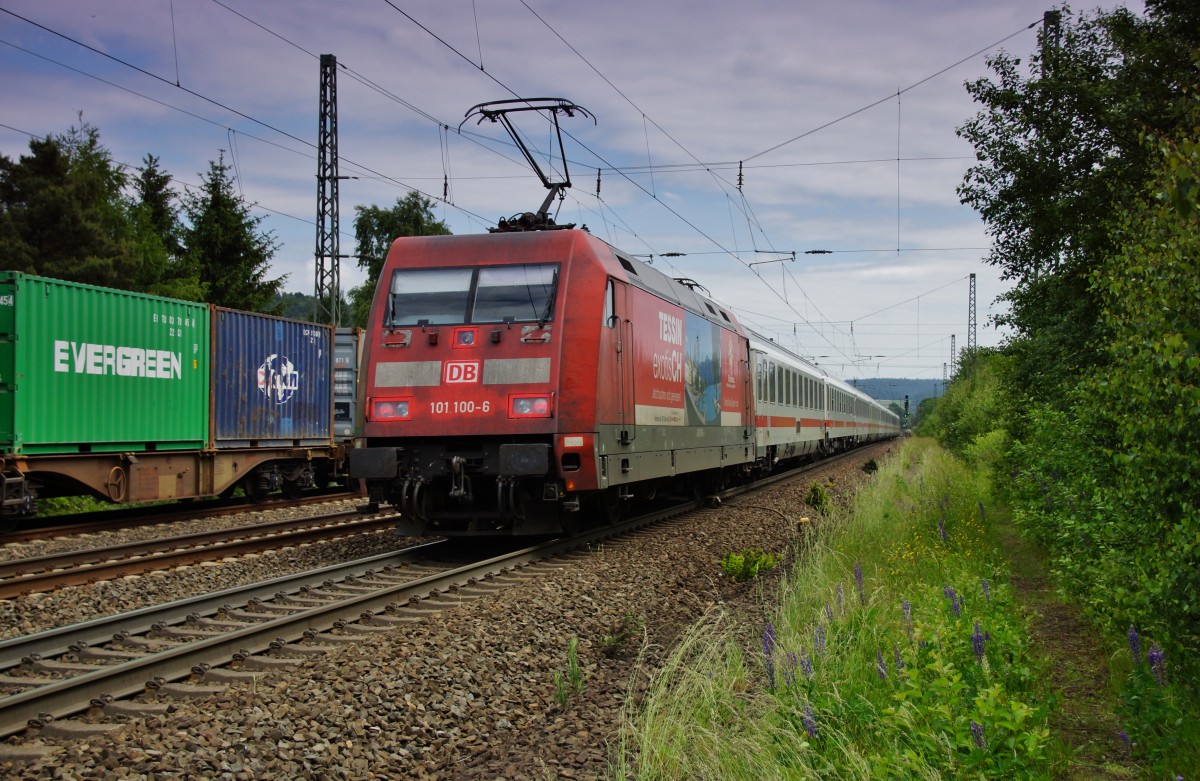 101 100-6 schiegt am 10.06.15 den IC 2159 nach Leipzig gesehen bei Fulda.