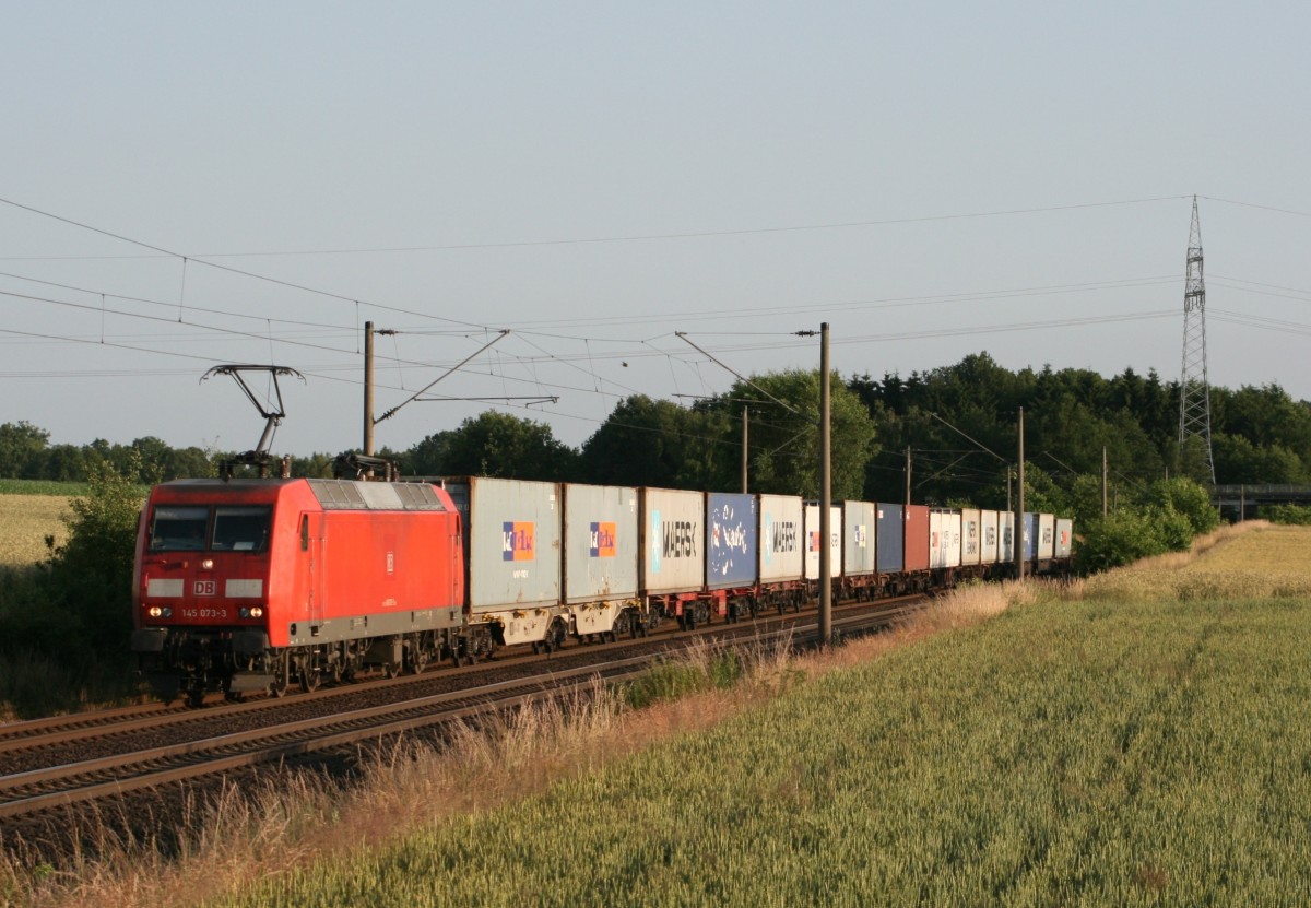 145 073 mit KM 50475 (Bremerhaven-Speckenbüttel–Maschen Rbf) am 09.07.2013 zwischen Jesteburg und Maschen Rbf