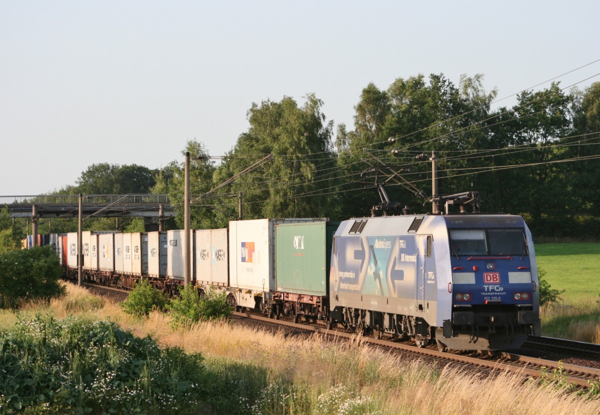 152 135 "Albatros" mit KM 50476 (Maschen Rbf–Bremerhaven-Speckenbüttel) am 09.07.2013 zwischen Maschen Rbf und Jesteburg