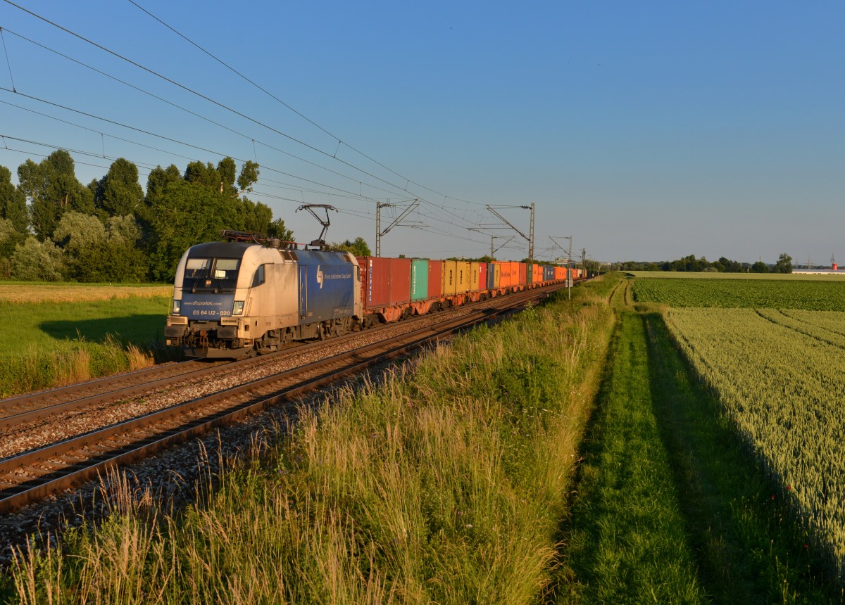 182 520 mit einem Containerzug am 24.06.2015 bei Plattling.