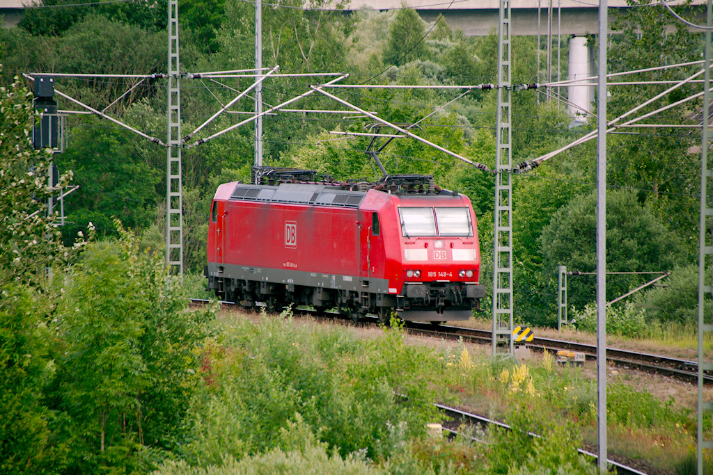 185 148 hat sich auf den Weg in die Abstellanlage - früher hieß das mal Bw - München Nord gemacht (27.06.2015)