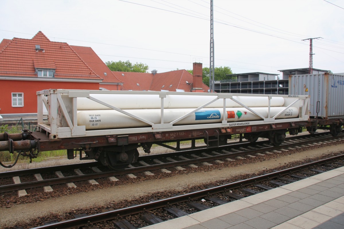 27.6.2015 Frankfurt/O. Spezialwagen mit Aufschrift "Sulfur Hexafluride, RID/ADR AAR 600,48 T9"