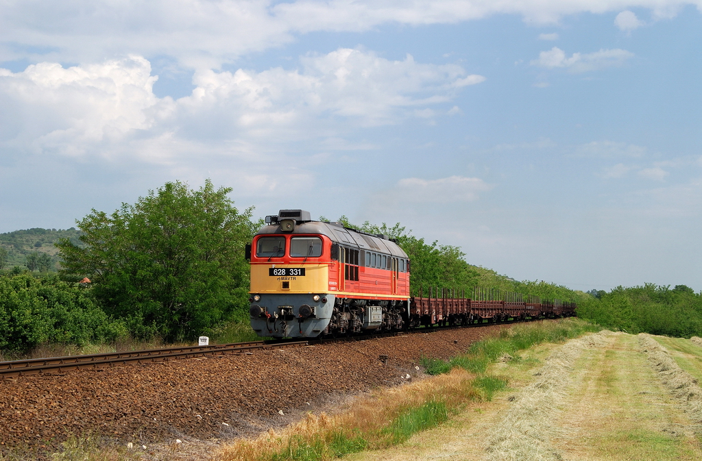 628 331 mit Güterzug vor Bodrogkisfalud (24.05.2014)