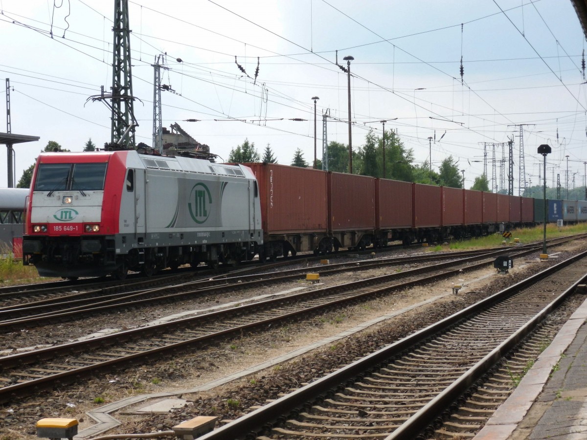 Am 27.06.2015 kam 185 649 mit ihrem Containerzug aus Richtung Salzwedel nach Stendal und fuhr weiter nach Magdeburg.