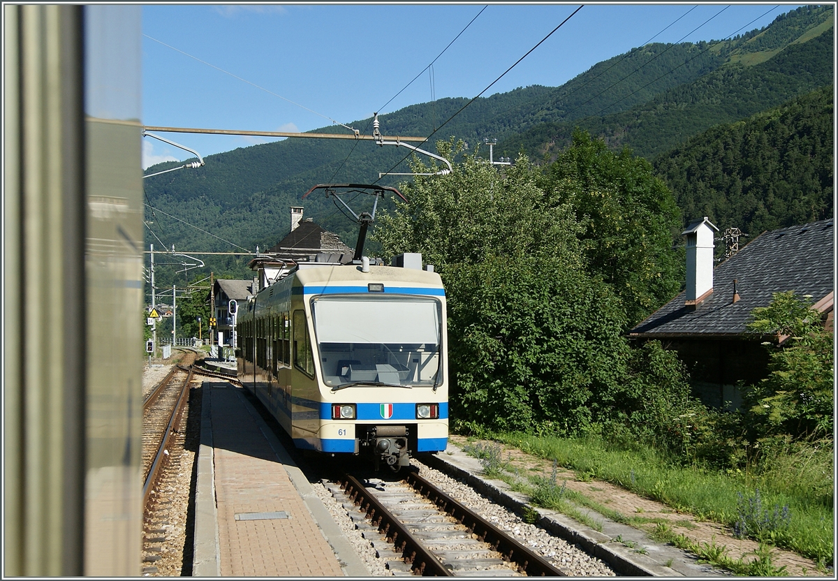 Auf der Fahrt von Domodossoala nach Locarno kreuzt in Gagnone-Orcesco unser Zug den ABe 4/6 61 der als Gegenzug D 32 nach Domodossola unterwegs ist.
