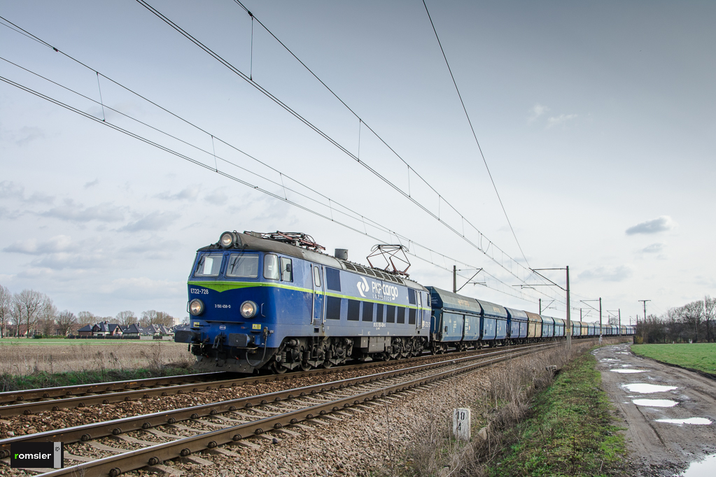ET22-728 der PKP Cargo mit einem Kohlenganzzug in Tychy(Tichau)am 07.04.2015.