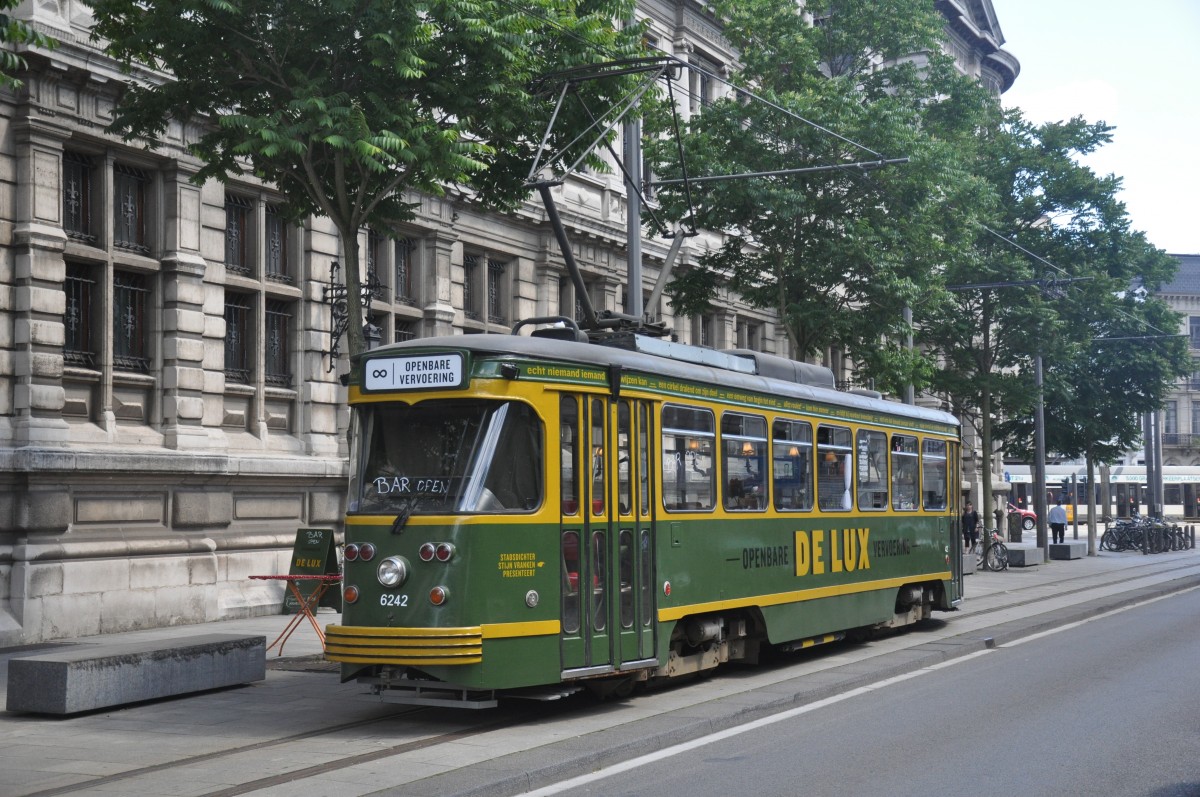 PCC 6242 von De Lijn Gent jetzt eingesetzt für Sonderfahrten Tram DE LUX in Antwerpen, aufgenommen am Haltestelle Nationale Bank 27.06.2015