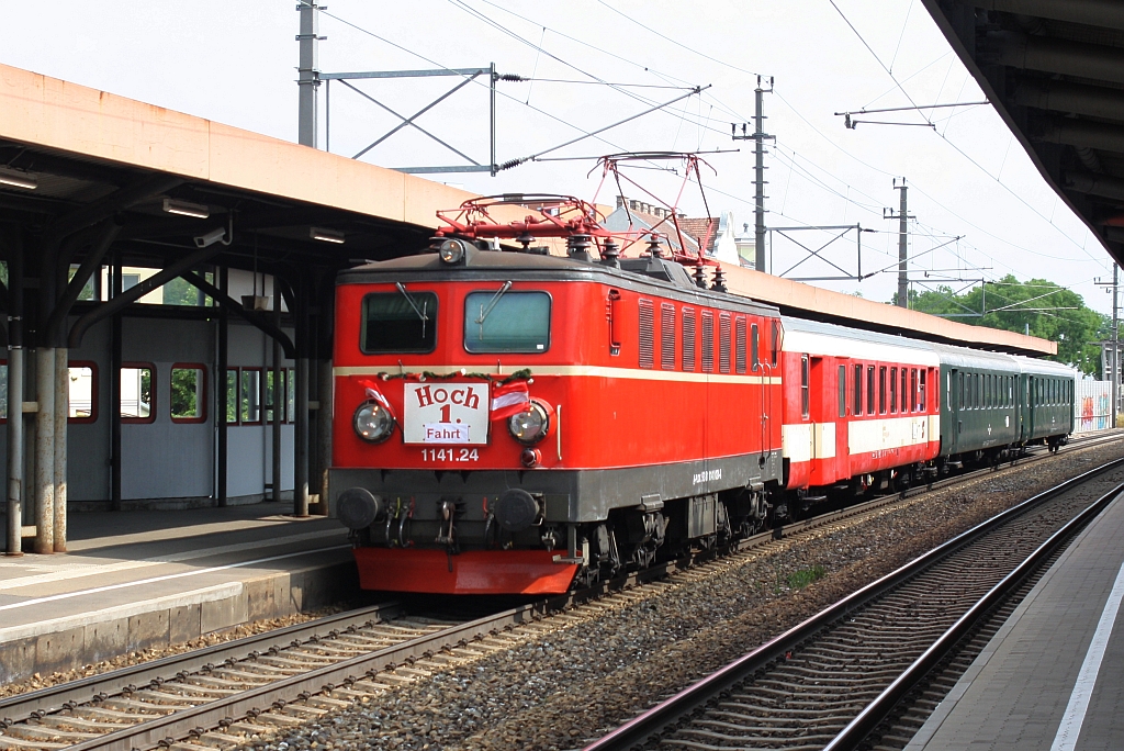 PLOK 1141.24 fährt am 28.Juni 2015 mit dem EZ 14391 durch die Hst. Atzgersdorf.