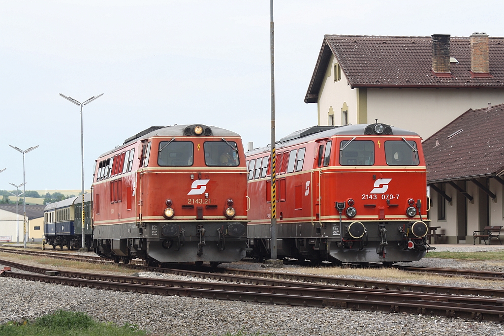 WLB 2143.21 und NLB 2143 070-7 nach der Ankunft mit dem EZ 7490 am 27.Juni 2015 in Ernstbrunn.