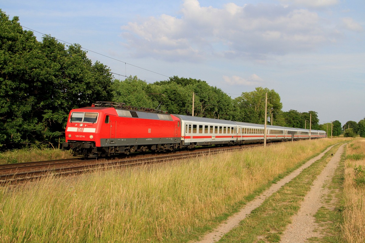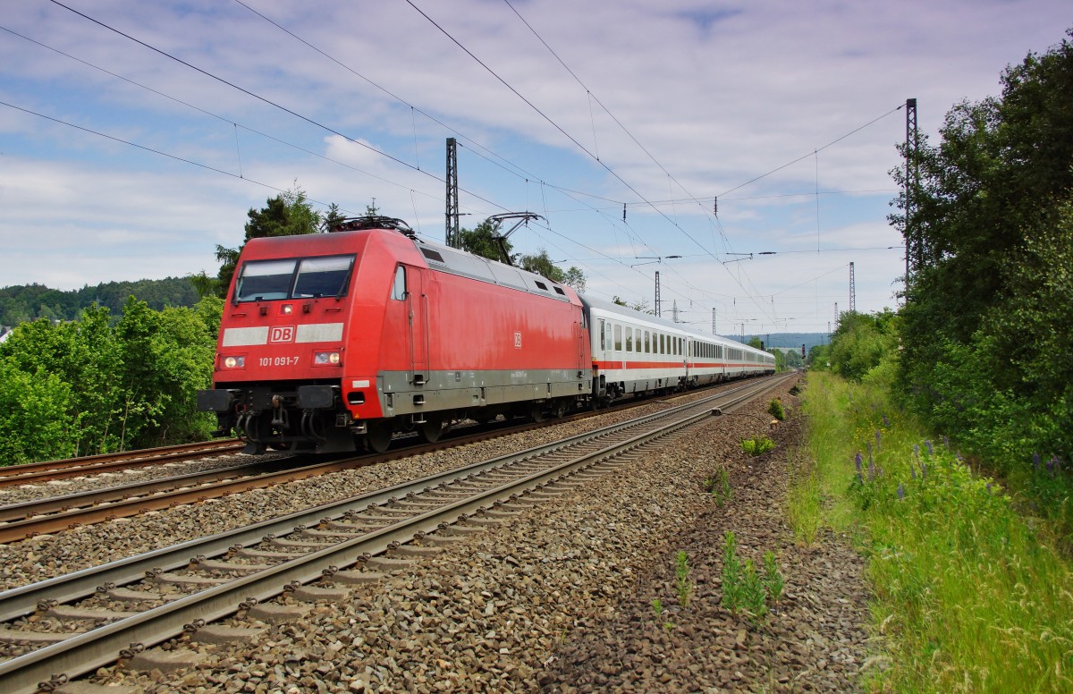 101 091-7 ist am 10.06.15 als IC 2340 nach Frankfurt/M. unterwegs abgelichtet bei Fulda.
