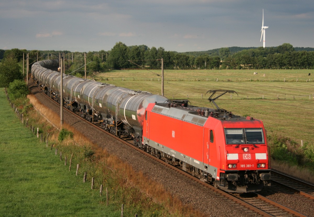 185 381 mit XP 61076 (Hamburg Hohe Schaar–Salzbergen) am 31.07.2013 zwischen Maschen Rbf und Jesteburg