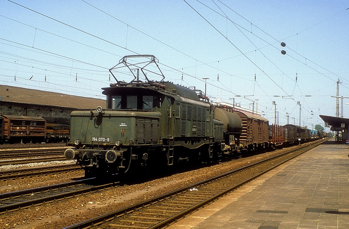 Methusalemtreffen. Die mit 57 Jahren älteste DB-Streckenlok 115 114-1 fährt in ihre Warteposition. Daneben eine der ältesten Loks der SBB, die 48-jährige Re 4/4II 11111, kurz nach der Ankunft in Singen. Juni 2015.