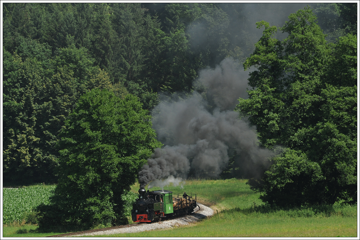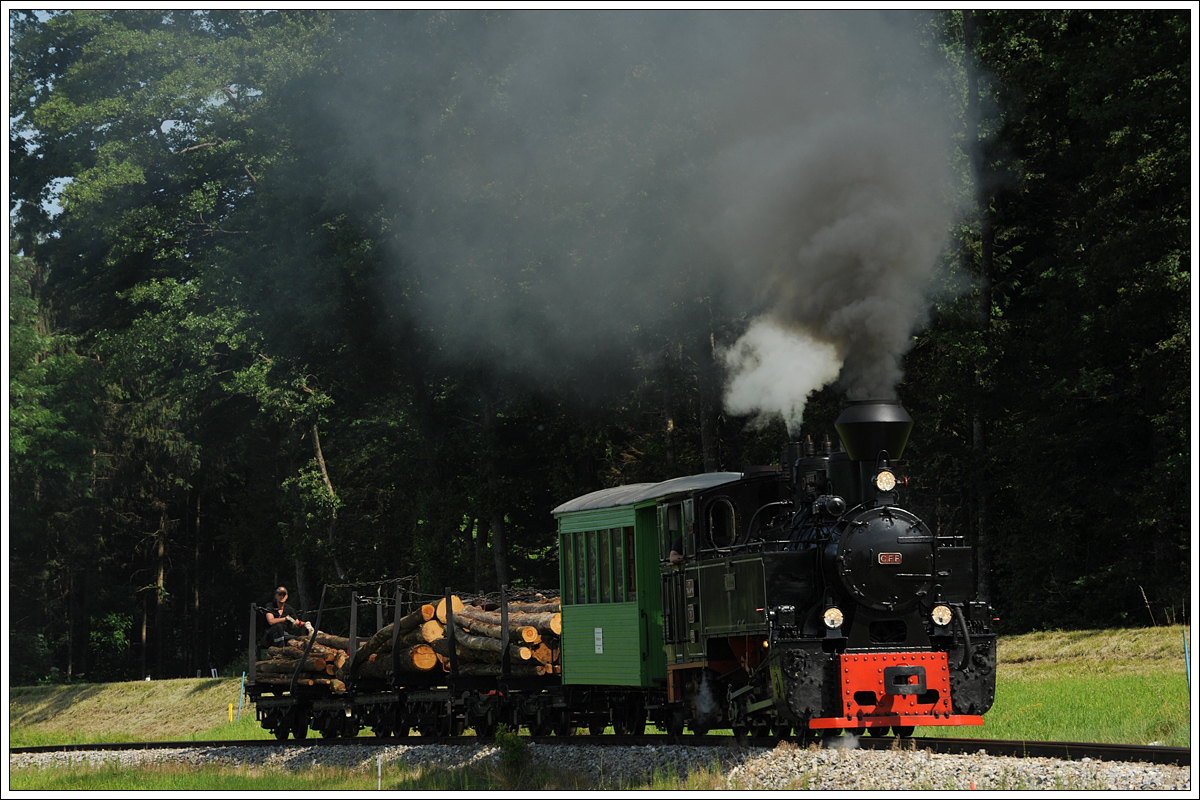 Als Treffen der Generationen kann man das Bild eigentlich gar nicht betiteln, den der Altersunterschied der beiden Fahrzeuge ist gerade einmal 24 Jahre. Die ehemalige rumänische Waldbahnlokomotive 764.411R Model Resita Nr. 619 ist BJ 1986, unsere GTW's wurden ab 2010 ausgeliefert. Preding am 26.6.2015.