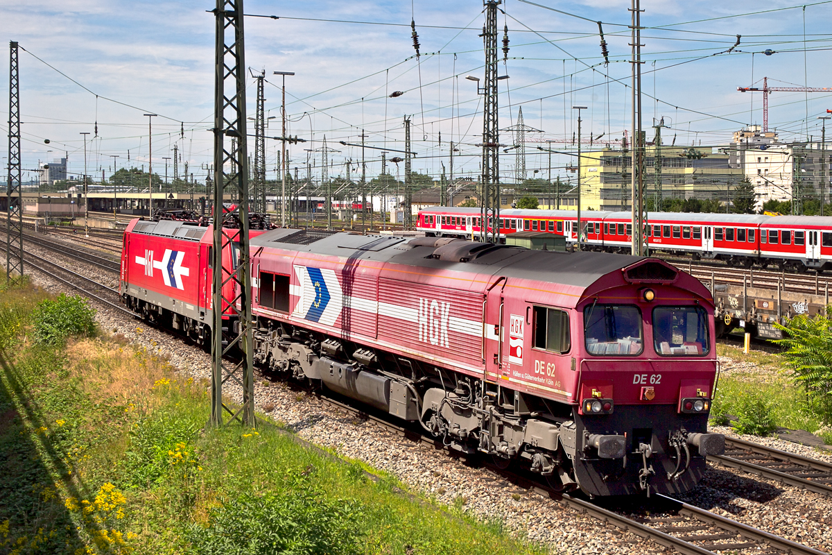 DE 62 und 185 584-0 von der HGK fahren durch den Bahnhof Basel Bad.Bf.Bild Juni 2015
