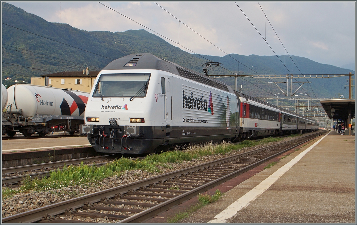 Die noch "mückenlose" neue Werbelok 460 035-9 in Giubiasco mit dem IR 2414 von Lugano nach Zürich HB.